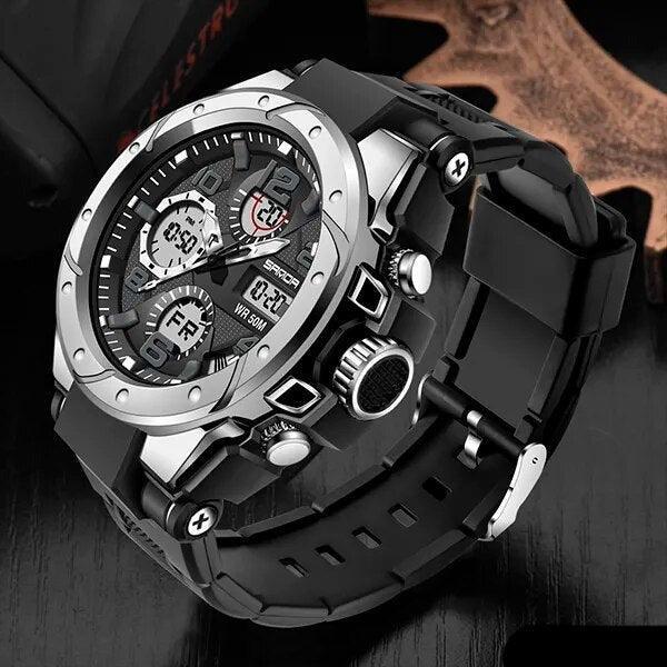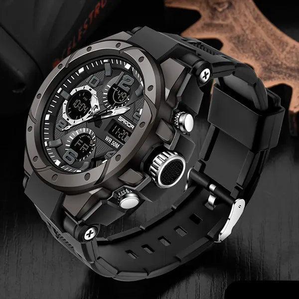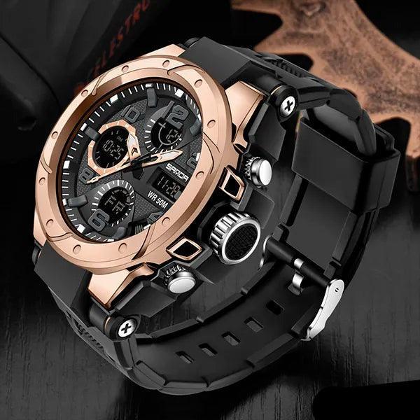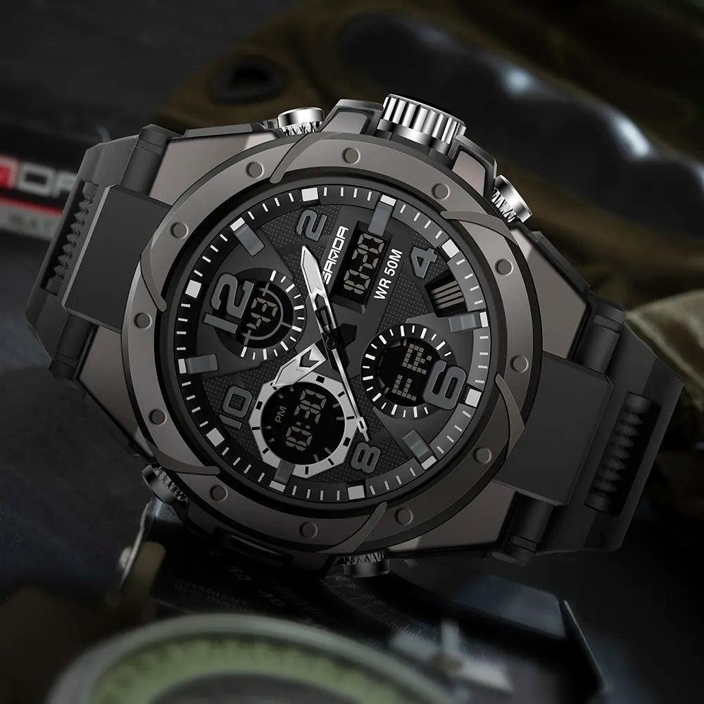 Sinta-se confiante em seu estilo e conte com a precisão do Relógio Militar SANDA Sport para mantê-lo pontual em suas atividades. 🏞️🏋️♂️🏊♂️