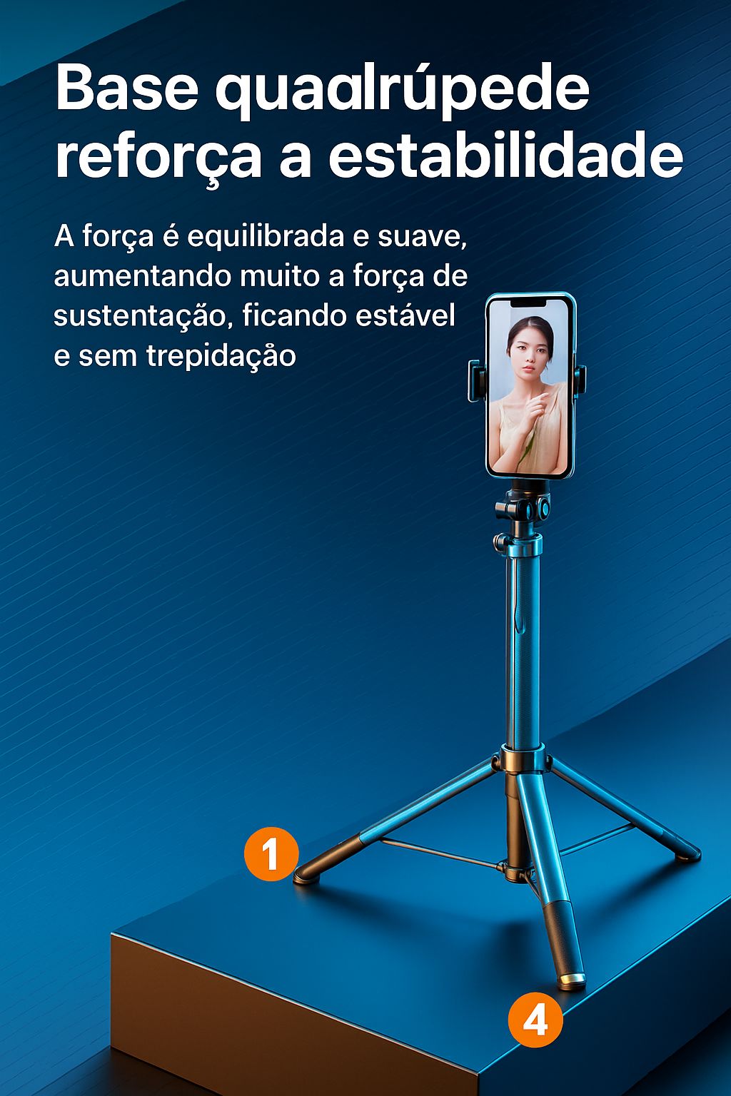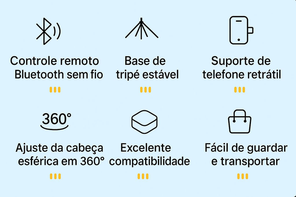 Estabilidade Total: Estrutura de quatro pernas que garante fotos e vídeos suaves e firmes, sem tremores.